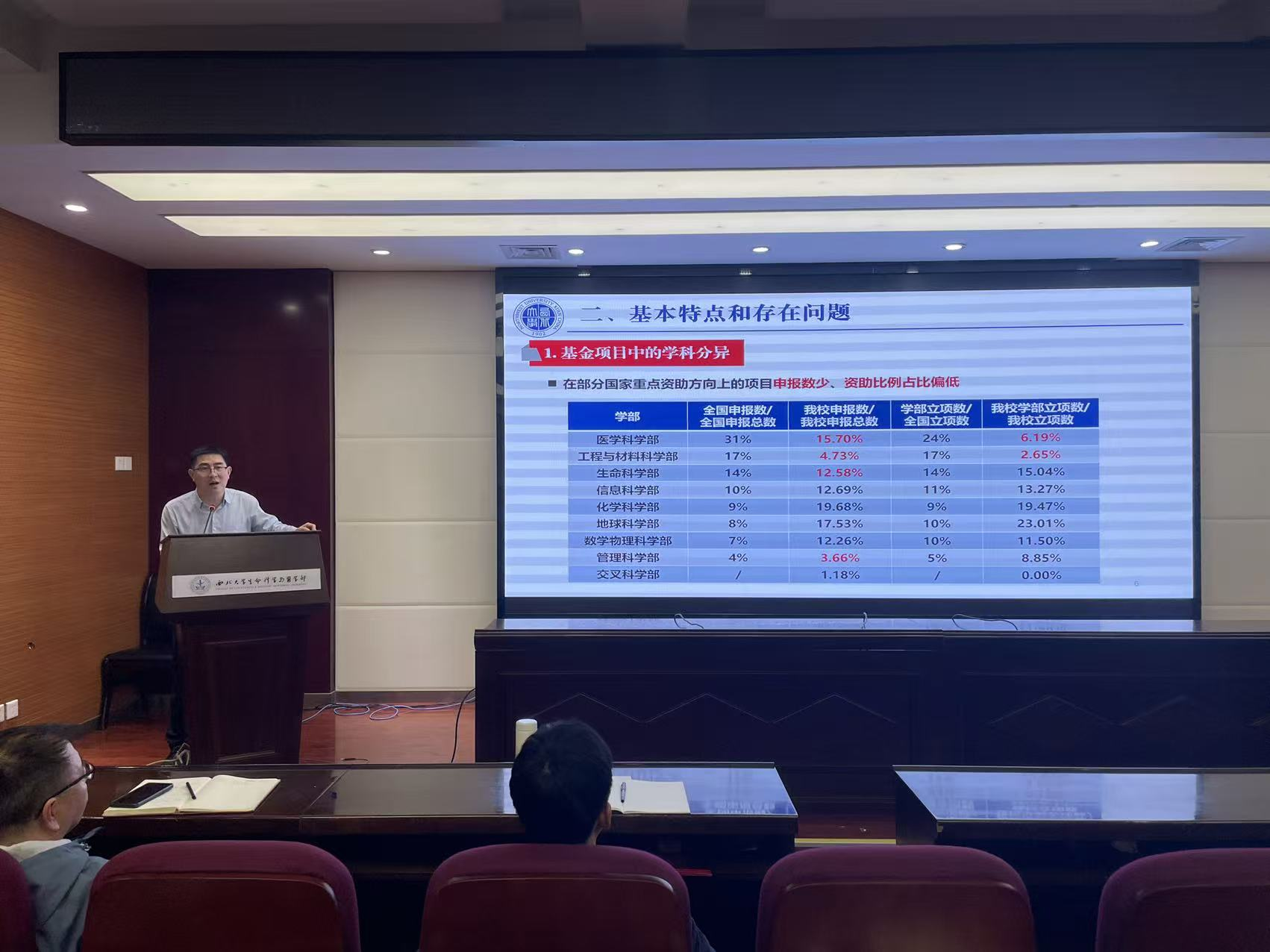 报告中赵新正副处长全面分析了我校我院2025年国家自然科学基金的立项情况。他强调,在青年项目结题后的“青面衔接”六年,是申报面上项目的“黄金窗口期”。他建议中青年教师务必把握机遇,及早规划与布局。